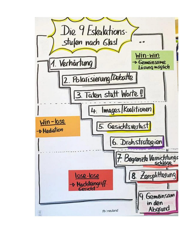 Es gibt viele Arten von Konflikten, sie haben jedoch etwas gemeinsam: Die Tendenz zur Eskalation! Unstimmigkeiten, Streitigkeiten zwischen zwei Menschen oder sogar Gruppen tendieren dazu, zu eskalieren. Konflikte sind mit Emotionen verbunden, mit Kränkungen, mit Gesichtsverlust.